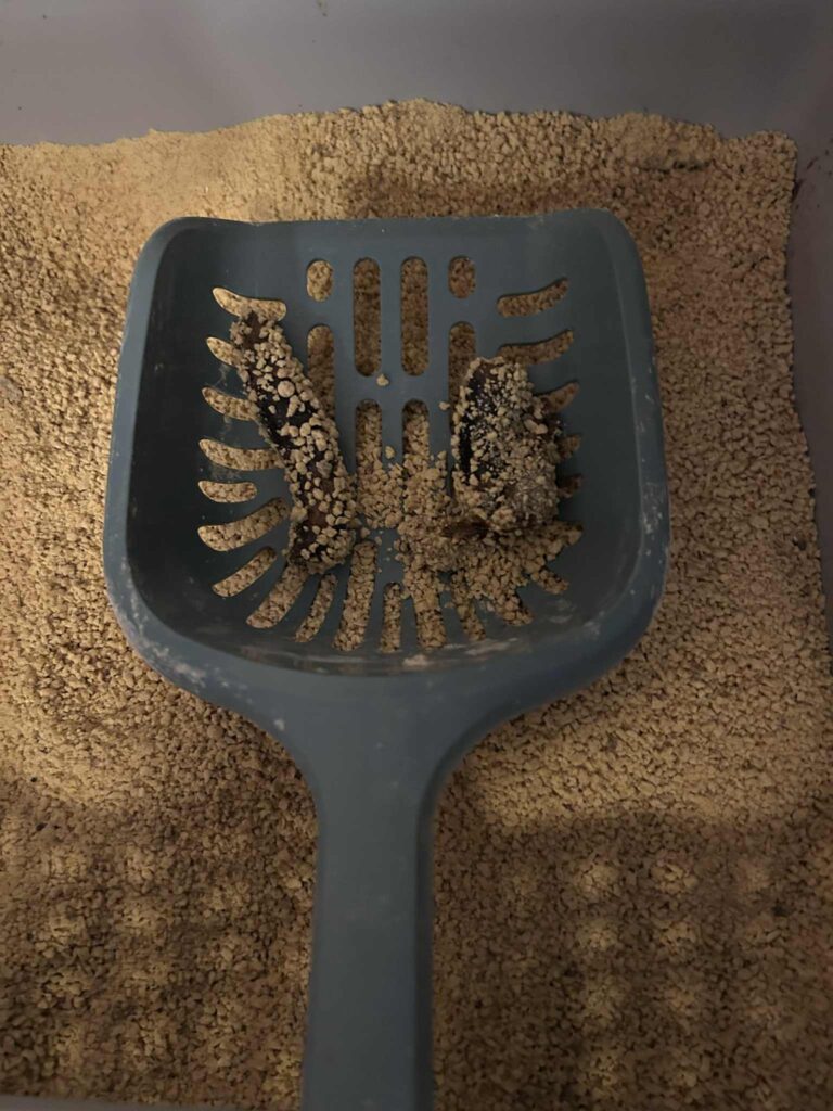 De dierenarts heeft haar een injectie tegen de spugerij gegeven en daarna was het overgeven verleden tijd. Jippie! Maar toen waren we er nog niet. De eetlust herstelde zich maar toen ontstond het volgende probleem: heftige diarree. Ze bevuilde zich enorm en drie keer naar de bak in een paar minuten tijd was geen uitzondering. Daar heb ik natuurlijk ook iets (Finidiar/Alfadiar) voor in huis maar dat kon de klus niet klaren. De dierenarts raadde me aan om Sher maar één soort eten te gaan geven en dat was Biome van Hill’s, een soort stoofpotje met veel vezels en groentes… Bijna vegetarisch dus. Dit is iets totaal tegenstrijdigs met wat ik onze katten, carnivoren!, voorzet. Ik heb net een heel verhaal geschreven voor de SAN over hoe slecht vegetarische voeding wel voor carnivoren is. Maar het sloeg aan en inmiddels is de diarree onder controle en meng ik het met het gebruikelijke menu. Sher is al dagenlang 100% zonder medicatie maar we hebben weer een nieuw probleem: Sher is nu verslaafd aan de geur-, kleur en smaakstoffen van het dieetvoer. Geen ideale situatie zo kort voor onze vakantie. Daarbij denk ik dat er ook een haarballenprobleem bij Sher speelt. Ze spuugt dan wel niet meer haar voedsel uit maar er kwam nog wel wat anders: een indrukwekkend grote haarbal. Zo’n antihaarballenpasta is helaas niet geschikt voor een kat met wankele darmpjes. Dat moet maar even wachten tot na de vakantie. Zorgen genoeg dus over onze dierbare Sher. Het is dat we een hele goede oppas hebben want anders zou ik gaan gillen 🙂 Wat ook helpt is dat we allemaal goede berichten krijgen over onze kittens bij hun nieuwe mensen.