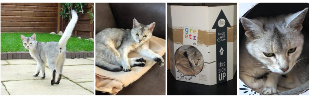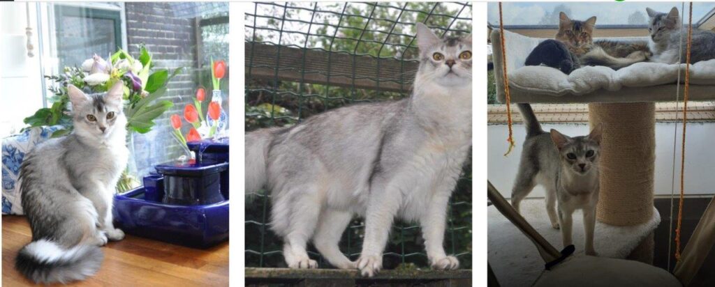 Onze andere stammoeder het zilver Abessijntje Tamara werd al met zo’n acht maanden krols. Op een zeer gedenkwaardige manier: de buren dachten dat we een pauw in de tuin hadden 🙂
