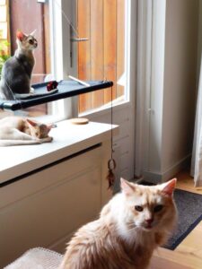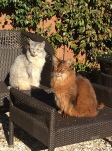 De rust keert al weer een beetje terug in huize Meijer. Twee kittens van Wiesje zijn al verhuisd: Yessie en Yade wonen nu bij Germa en Remco in Haarlem. Lekker dichtbij. Dat voelt altijd extra fijn. Wat ook de vreugde vergroot is de afgezette tuin en de aanwezigheid van een ontzettend lieve Somalikater. Die is nog familie ook van ons stel. Cinnamon is namelijk een halfbroer van Jack, hun xx-grootvader. De kennismaking verliep best voorspoedig, vooral dankzij het juiste gedrag van Cinnamon. Toen hij aanvoelde dat zij hem toch wel groot en vreemd vonden, nam hij wat afstand en kneep hij steeds zijn ogen steeds even dicht. Echt geweldig.