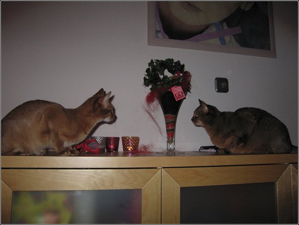 Vandaag hadden we ook bezoek voor de katten maar Eeszje snapt echt niet dat ze niet voor haar komen. Ter gelegenheid van ‘Eeszje de Kuvasz als catteryhond’ een hele speciale foto van een bord dat Alex Slingenberg voor de Kuvasz Vereniging geschilderd heeft en dat beschikbaar was gesteld voor de beste Kuvasz van de Wereldtentoonstelling toen deze in Nederland werd gehouden. Eeszje was nog net niet voldoende uitgegroeid om echt in aanmerking voor deze titel te kunnen komen, al werd ze al wel heel goed beoordeeld. Pas een jaar later, bij een andere gelegenheid, was ze in betere verhoudingen waardoor ze wèl in de prijzen viel.