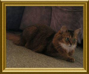 Ik ben gisteren bij Sirpa op bezoek geweest. Erg gezellig én genoten van de katten: allemaal familie. Van Tequise (13), de overgrootmoeder van Rooster, tot Zuci (15) de vader van The Fonz. Ik ben aan het experimenteren met m’n nieuwe fotobewerkingsprogramma. Eens kijken hoe het lijkt. Het kan er mee door. Het gouden portretlijstje leek me wel toepasselijk voor deze dieren.