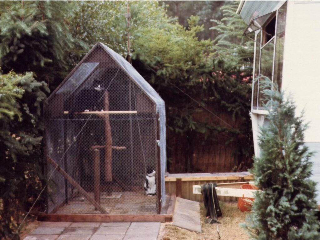 Ons buitenrennetje met onze twee zwart-witjes Sjimmie en Droppie bij onze stacaravan. Kort voor het maken van deze foto was onze Snoopy ontsnapt en helaas nooit teruggevonden. Eigenlijk blijf je 25 jaar lang zoeken. Tijdens het opruimen van de kasten wegens de verbouwing heb ik een mapje gevonden met nog een fotootje van haar. Zodra de boel wat op orde is en de scan een goed plaatsje heeft gekregen, ga ik een heleboel verloren gewaande foto’s inscannen.