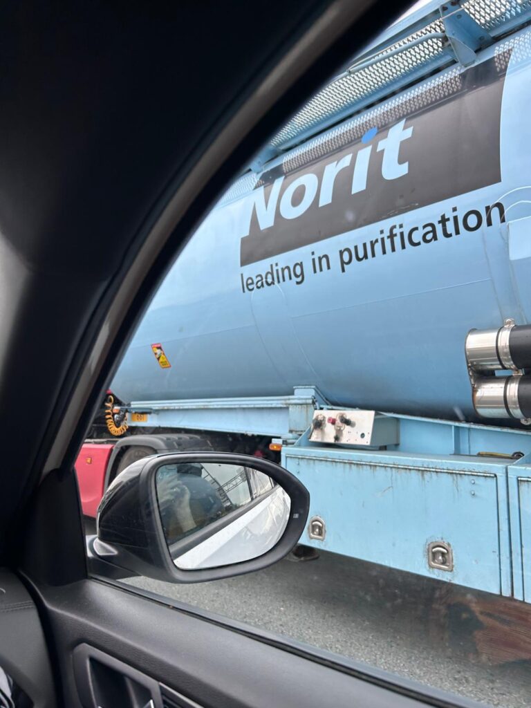 Wij gingen dus onlangs op vakantie… Niet het meest simpele wanneer je én wat ouder bent én huisdieren hebt. Onze oudsten moesten natuurlijk mee. Dat Polly meegaat, daar valt niet aan te tornen en Shabanou heeft nu eenmaal vanwege haar onbetrouwbare eetlust en leeftijdsgebonden mankementjes extra zorg nodig. En ik vind het veel te gezellig om deze lieve meid bij me te hebben. Maar om alles in de auto te krijgen: een scootmobiel voor mij, een loopfiets voor Huibert, kattenbakken, mandjes en natuurlijk ook gewoon de koffers. Zelfs met de dakkoffer was het passen en meten. Ter verhoging van de voorbereidingsstress werd ook nog Polly ziek. Fikse diarree. Gelukkig heb ik altijd Alfadiar in de huisapotheek voor onze dieren dus dat was een hele geruststelling. Terwijl we al file-rijdende (het was erg druk op Goede Vrijdag) uitkeken naar een gelegenheid voor een noodzakelijke stop voor Polly passeerden we een tankwagen vol met Norit.