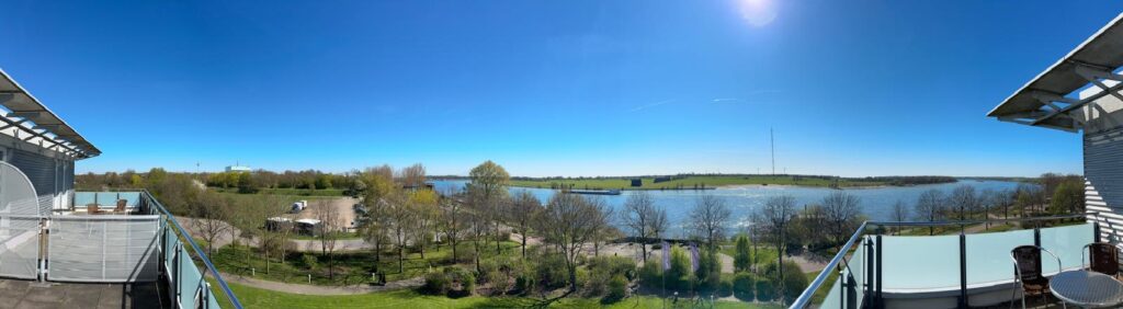 Panoramafoto vanaf het dakterras. Op een dag na met wat minder aantrekkelijk weer was het bijzonder aangenaam. En dat begin april.