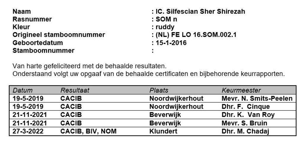 Het weer viel dus mee maar ik ben blij voor mezelf dat ik thuis ben gebleven. Ik was niet in topconditie en kon nu mooi de titelaanvraag voor Sher regelen. Bij het inscannen van de keurrapporten las ik ze uiteraard weer even door. Dat ze een geweldig leuk dier is voor ons en voor iedereen die ze tegenkomt, wisten we uiteraard wel maar het is wel leuk wanneer de keurmeesters daar ook oog voor hebben en een opmerking over maken op het keurrapport.