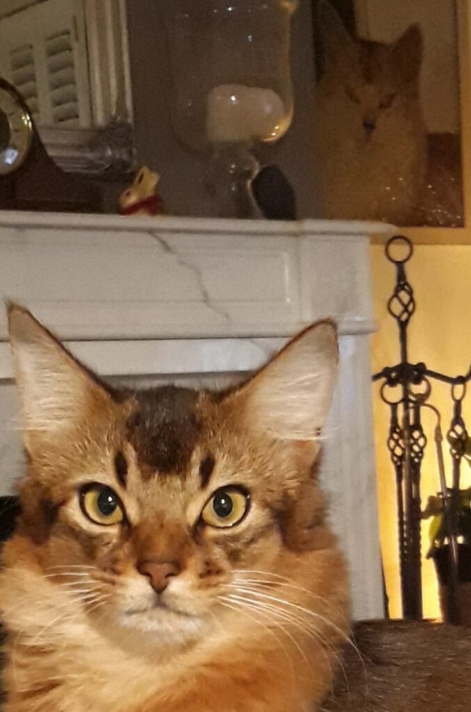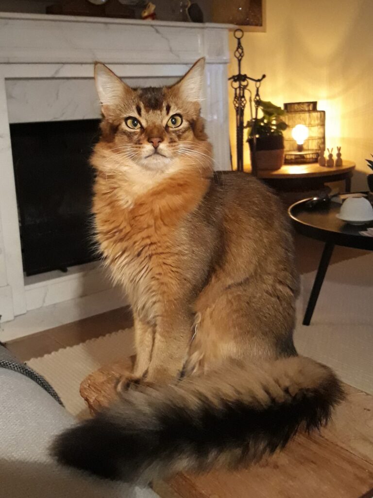 Met zo’n prachtige poes willen we natuurlijk ook weer graag een nestje fokken. Maar wanneer? Dat is iets voor de geduldige mens. Na haar eerste nest op 27 januari 2018 heeft ze een suprelorinstaafje gekregen en dat raakte medio april 2020 uitgewerkt. Dat heeft haar dus een kleine twee jaar beschermd tegen de hormoonschommelingen. Na haar tweede nest op 30 juli 2020 heeft ze weer zo’n staafje geïmplanteerd gekregen. Bij ieder dier schijnt dit anders te werken maar wanneer dit bij haar nu even lang werkt dan zou ze eind dit jaar weer een nestje kunnen krijgen. Voor de wildkleur Somali als variëteit zou het goed zijn wanneer haar genen in combinatie met een kater met een diepe kleur via een zoon of dochter zou kunnen worden doorgegeven maar voor de zilvertjes zou een nestje van Bodiir geweldig zijn…