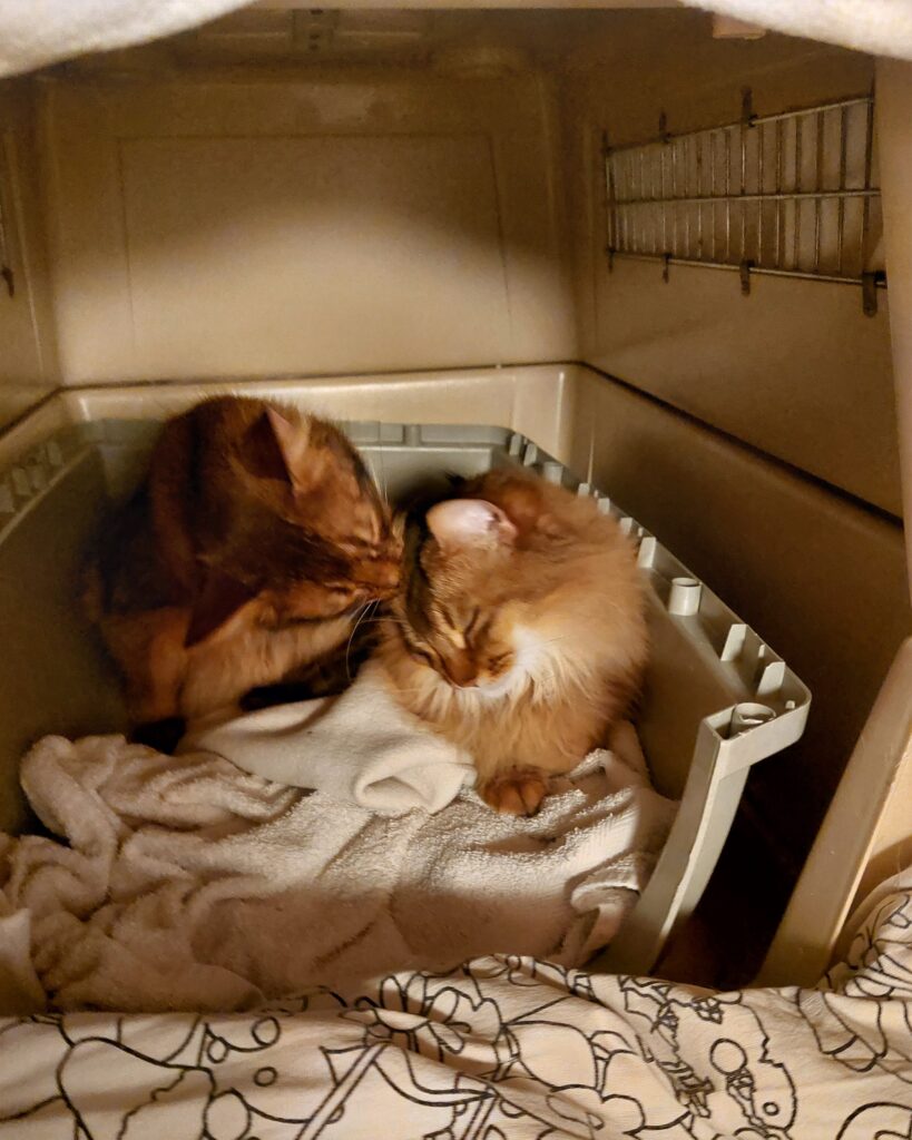 De eigenaren van de kittens houden ons heel trouw op de hoogte over het wel en wee van deze kittens. Lilibet woont bij Rudi bij twee andere Silfescians, Taki bij Reinoud en Kiki en vooral kattenvriendje Floep en Boudica zien wij het vaakst want zij woont bij Richard in Haarlem, bij haar vader Gio. Omdat ze ook ook af en toe voor Richard als fotograaf poseert, komt ze regelmatig met de prachtigste foto’s op zijn Facebook langs. Ik zie haar ook op de kattententoonstellingen waar ze heel wat harten voor de Somali weet te winnen.