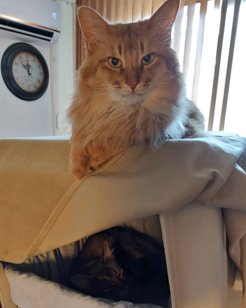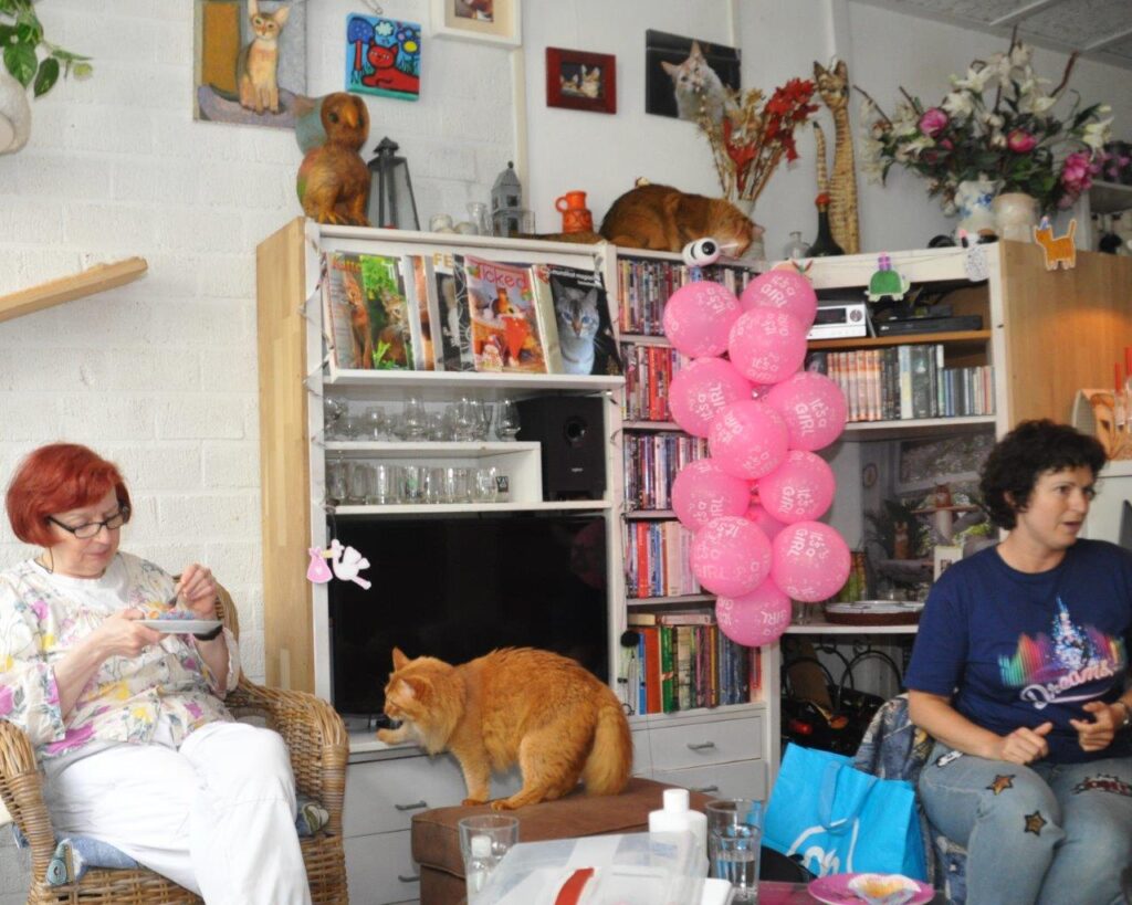 Ik zit hier nu in mijn hoekje achter mijn laptop met Bo Taki half over mijn rechterarm, Boudica en Lilibet liggen op het kastje links naast me en Polly ligt rechts naast mijn stoel. De andere katten houden allemaal hun siësta in een mandje, op bed of op de bank in de tuin.