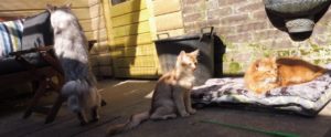 My’nie verveelt zich geen moment. Ze is graag buiten en heeft de cavia’s van de buren ontdekt. Om er helemaal een feestje voor haar van te maken, kwam er een kauwtje op haar buitenren zitten.