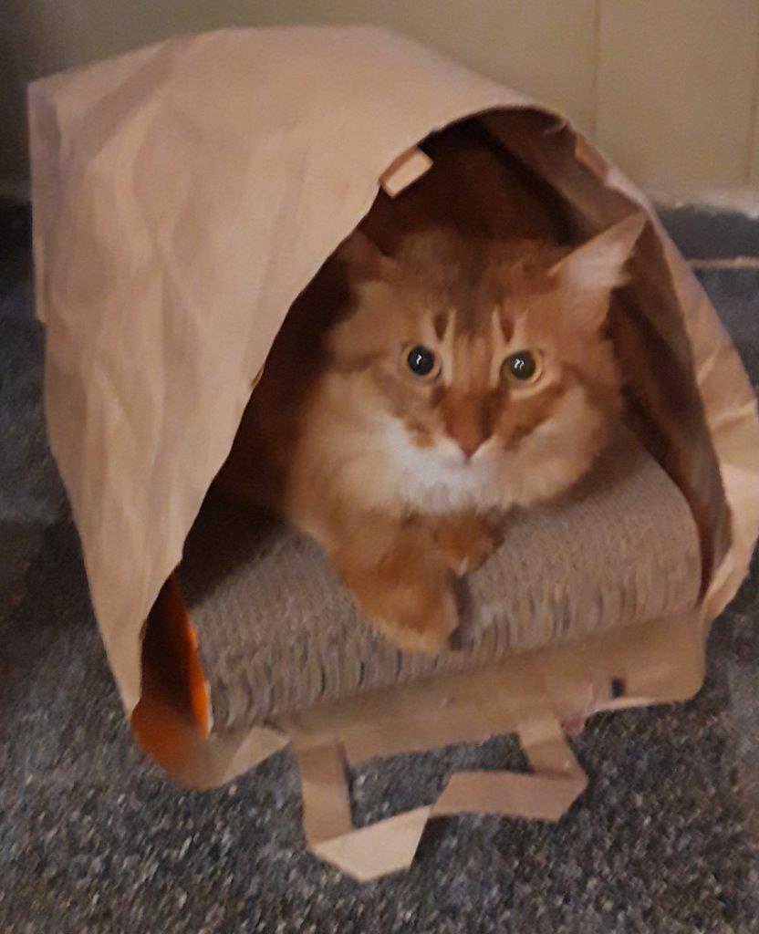 Het is jammer voor de katten dat ik niet lekker kan zitten op onze bank en dus meestal voor mijn relaxstoel kies want katten houden van bankzitters. Gelukkig kunnen ze met onze bezoekers hun kattenhartjes ophalen. Somali’s hebben geen last van eenkennigheid. Als tussenoplossing nestel ik me ‘s morgens vaak met mijn ontbijtje, krant en spelletje boven in bed en dan kan zelfs een hele groep hun hart ophalen. Links, rechts, middenvoor, benen en wie dit te druk vindt, wacht bescheiden zijn beurt af.