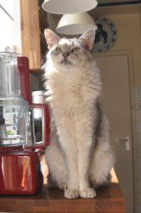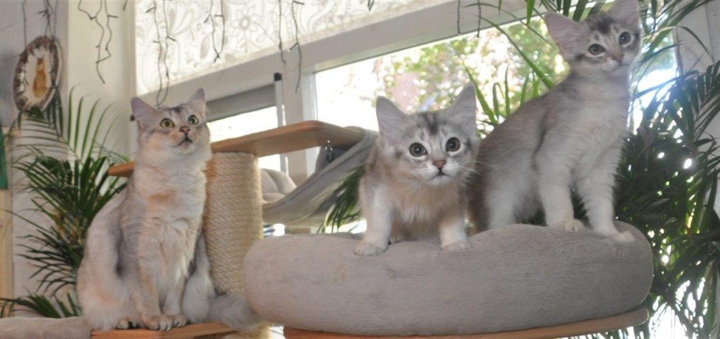 Ik heb mijn eerste eigen kweek al mogen delen met AnnaMaria, uiteraard ook iemand die katten van ons heeft: vroeger dé Florimond, Pollux, daarna Indy (de grootvader van Shabanou) en nu één van de sorrel katers, Murphy, van het unieke kwintet uit 2004 dat mijn Facebookpagina’s en mijn vorige website (Silfescian-cats) siert.