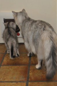Vandaag was Huibert actief bij de Dag van de hond bij de kynologenclub in Heemstede en ik had hier een Dag van de kat met Robert en Ninon die voor hun Vidar op bezoek kwamen.
