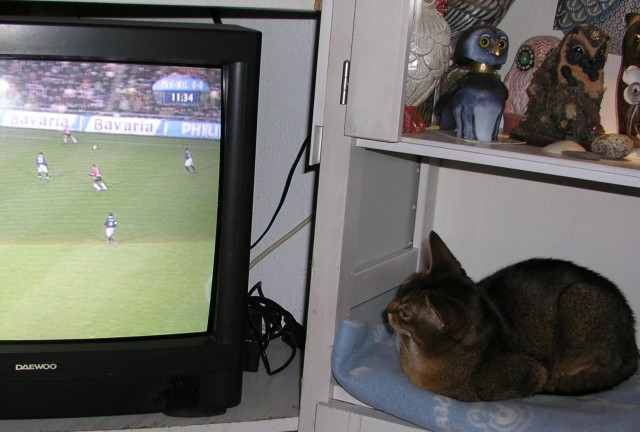 De site van Enjoytv is niet bereikbaar, dus het filmpje is nu niet (meer) te bekijken. Voor het geval dat de site alleen maar tijdelijk onbereikbaar is, bewaar ik de info nog maar even hier. Het was wel heel erg leuk: onze Famous Fonzie voor de tweede keer in zijn kattenleventjes op de televisie. Er is/was dus een drie minuten durend fimpje over onze cattery te zien op Enjoy-tv: http://www.enjoytv.nl/online/dos051103.asp