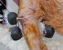 Nardi maakt het goed en kan ondanks zijn gebroken kaak en nog scheve bekkie wel zijn Carnibest naar binnen krijgen. Zijn baasje heeft een kittenkooi hier opgehaald want voor een goed herstel móet hij zijn poot ontzien en acht!! weken in een kooi leven.