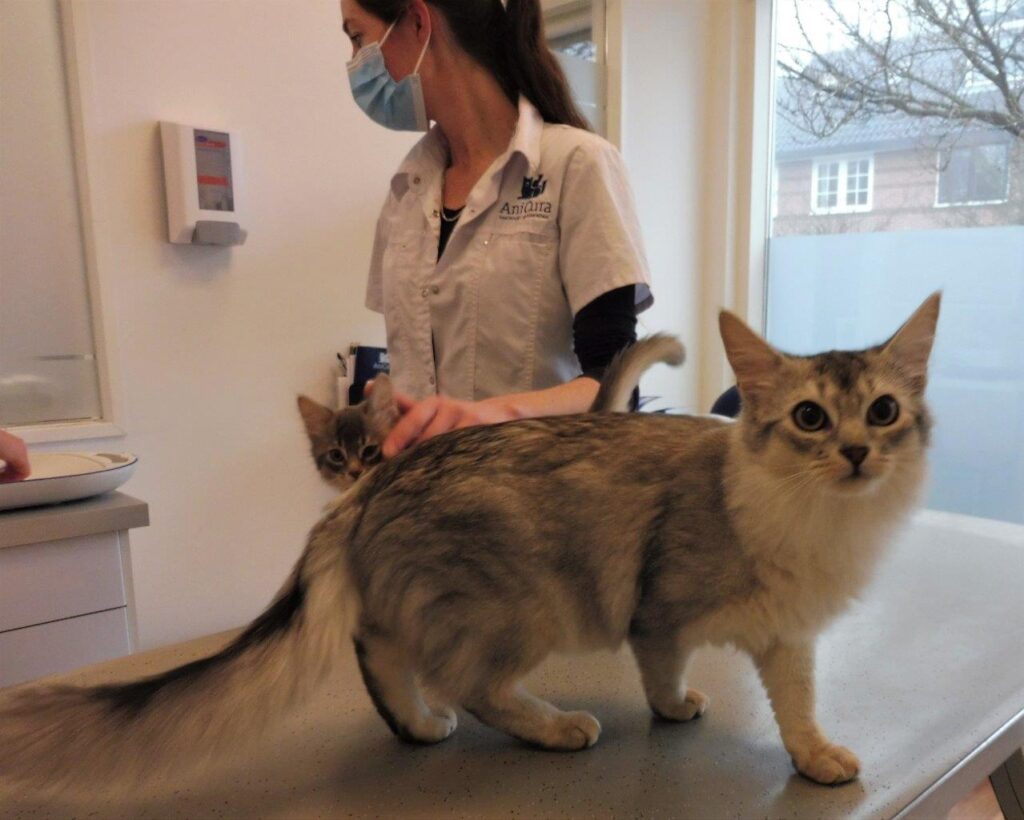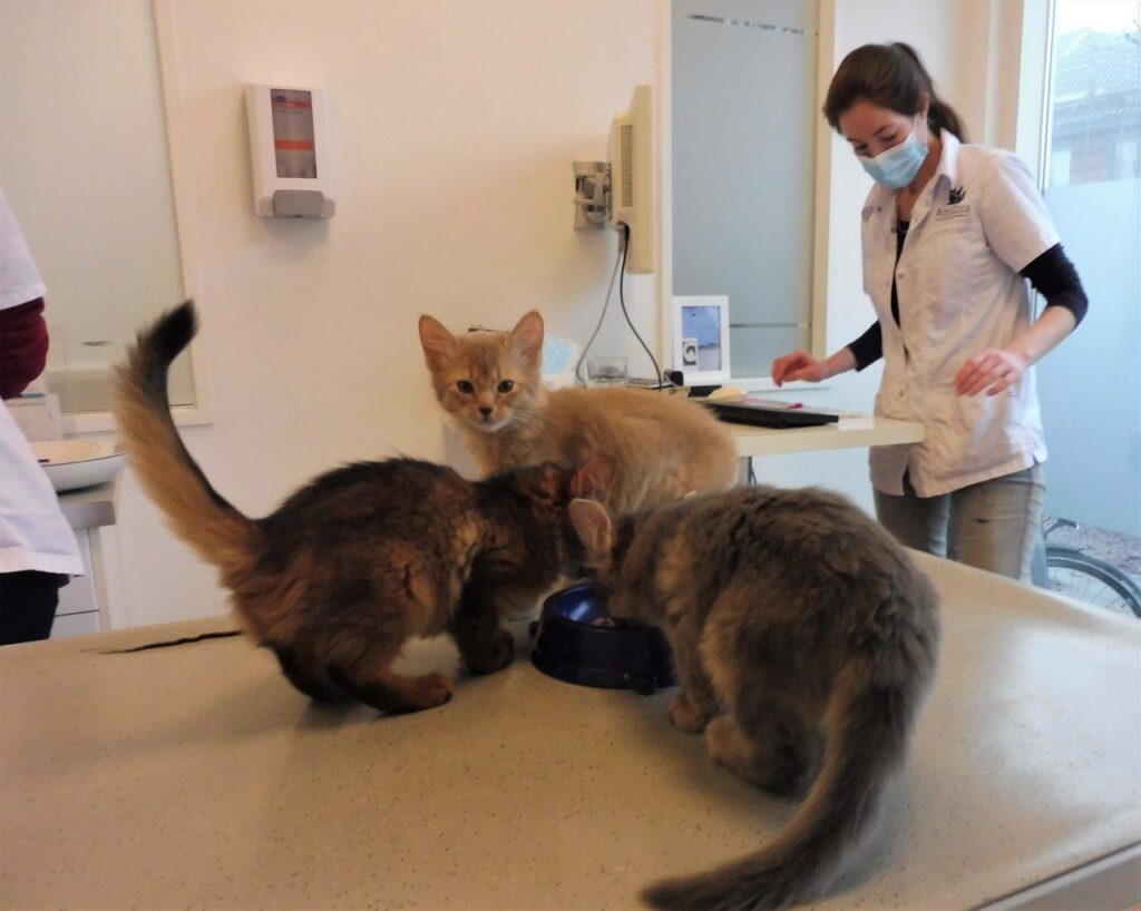 De kittens gedroegen zich super, alles verliep goed. We hadden mama Sheralyn en Bodiir ook mee voor een extra controle. Ik maakte me zorgen over haar baarmoeder omdat ze alweer een beetje krolsig is.