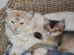 Een tweede kat als huisdier is een van onze voorwaarden voor mensen die een kitten van ons zouden willen hebben. Katten kunnen om allerlei redenen voor kortere, langere tijd of zelfs voor altijd met elkaar in een conflictsituatie belanden. Heel vaak blijkt na verloop van tijd dat het in het belang van de dieren noodzakelijk is om een of zelfs meer van de betrokken dieren te herplaatsen. In het geval van goed gefokte mooie en gezonde raskatten zijn de goede adresjes vaak voor ze voor het opscheppen; bij de huiskatten en hun mensen die ook minder contacten hebben om bruikbare tips te krijgen, is de situatie voor mens en dier vaak minder rooskleurig.