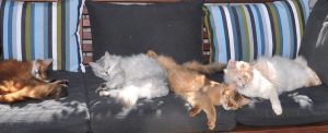 Conflicten tussen katten zijn zeker in die groepen waar de hormonen actief zijn, zoals in cattery’s niet iets zeldzaams. Dit is ook een van de redenen waarom in sommige cattery’s dieren permanent gescheiden gehouden worden en als regel herplaatst worden. Blijkbaar heb ik als fokker voorheen heel veel geluk gehad maar sinds de extreem harde knal in ons smalle straatje een aantal jaren geleden, is er ondanks de herplaatsing van meerdere dieren, een bepaalde overgevoeligheid ontstaan.