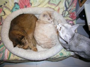 Goede berichten uit Tilburg over Nena, Rudolphine heeft weer een prachtige nieuwsbrief over haar mooie Nardi gemaakt, Sophie is helemaal in de gloria – en ik ook – over het plan om haar Lizzy naar Nazeer in Duitsland te brengen voor een nestje, ik heb een verhaal over Kelly Kathleen geschreven voor de veteranenhoek op Kattenpraat.nl http://www.kattenpraat.nl/site/viewtopic.php?t=14432 [Link werkt niet meer *], Hugo heeft dé foto van Nieckjes nest als binnenkomertje op de site geplaatst (mooi, mooi!!), Nieckje is na één dag uitrusten van de vermoeienissen van het moederschap weer helemaal de mallotige, ondernemende Somali die ze voor de bevalling was, Murray vond ter gelegenheid van zijn allerlaatste pil van al deze weken dat hij geen leverpastei meer kon zien en vertikte het zijn pilletje te slikken, m’n verhaal over de Somali dat ik had geschreven voor Mundikat Magazine is over vier pagina’s met zeven kleurenfoto’s geplaatst én ik heb schattige foto’s van Sijntje ingescand en bij haar topic geplaatst.