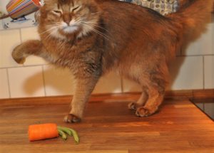 Wij mensen zijn omnivoren en onze huisdieren carnivoren. Juist zij kunnen extra gevoelig zijn voor alles wat niet van dierlijke oorsprong is wat vooral in de gangbare brokjes en blikjes zit. Aanleg speelt ook een grote rol en juist Elfie heeft via een paar voorouders een ongunstige aanleg, lees: zeer gezonde eetlust en trage stofwisseling meegekregen. Ik moet er vooral bij haar op letten dat zij minder graanrijke tussendoortjes krijgt. Suikerziekte kunnen krijgen, is een groot schrikbeeld.