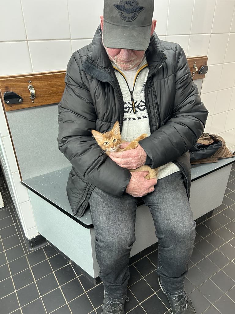Grote dag vandaag; met de kittens naar de dierenarts voor hun laatste vaccinatie. Bij het zetten van de chip gedroegen ze zich keurig maar vooral Frits maakte een boel drukte bij de niesziekte-enting. Hij kan echt in een seconde overgaan van spinnend knuffelen naar ‘alle registers open voor ultiem verzet’ en daarna weer in minder dan een seconde weer terug naar spinnend knuffelen.