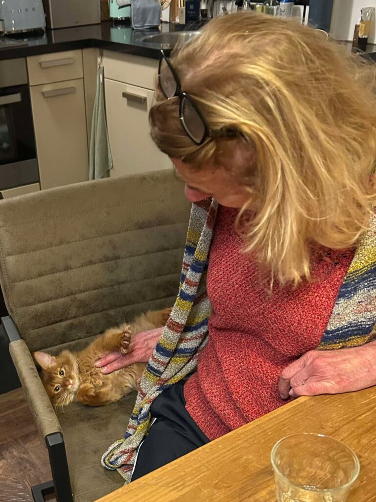 Op dit moment ligt Frits bij me op schoot en even daarvoor was Felicia bij me. Zo leuk dat ze dit echt afwisselen. Ze komen allemaal aan de beurt. Helemaal vertederend is het begroetingskoertje van Frederick wanneer hij zich meldt.