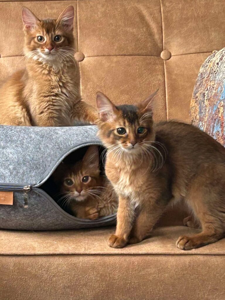 Voordat Bobbie een ontstoken oog kreeg, waren we nog met zuslief Felicia bij de dierenarts geweest voor haar vaccinatie tegen rabiës omdat zij later in het buitenland gaat wonen. Die mag pas gegeven worden wanneer een kitten twaalf weken oud is. Ooit liet ik onze lieve Moni gelijktijdig vaccineren tegen katten- en niesziekte én rabiës. Niet lang daarna werd hij ziek en moesten we hem wegens FIP laten inslapen… Ik weet inmiddels best wel dat de oorzaak van het kunnen krijgen van FIP eerder door het voer van toen (alleen brokjes) veroorzaakt werd maar toch zit het er diep bij me in dat ik met die driedubbele vaccinatie zijn weerstand had ondermijnd.
