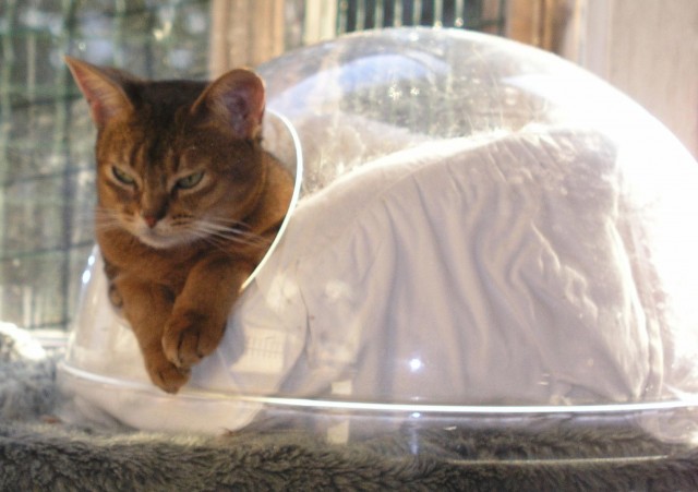 Het is momenteel lekker weer en de katten liggen meer buiten in de tuin dan binnen. Maar het snoepkoepeltje in de kattenkamer is zodanig favoriet dat dit zelden leeg staat: alleen wanneer het kwik boven de 25 graden uitkomt.