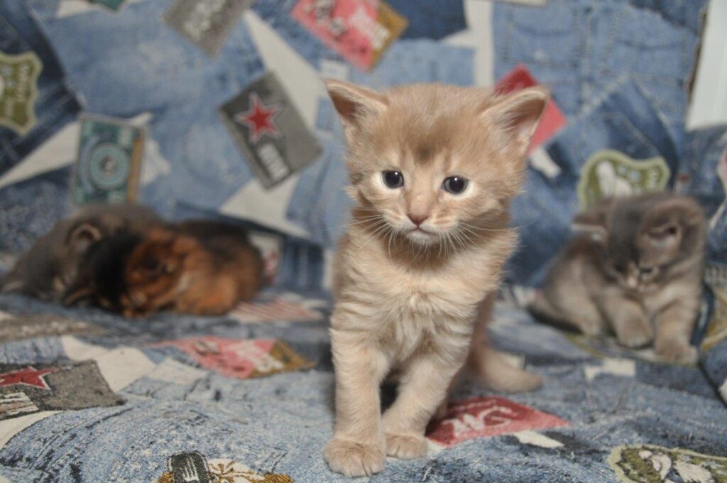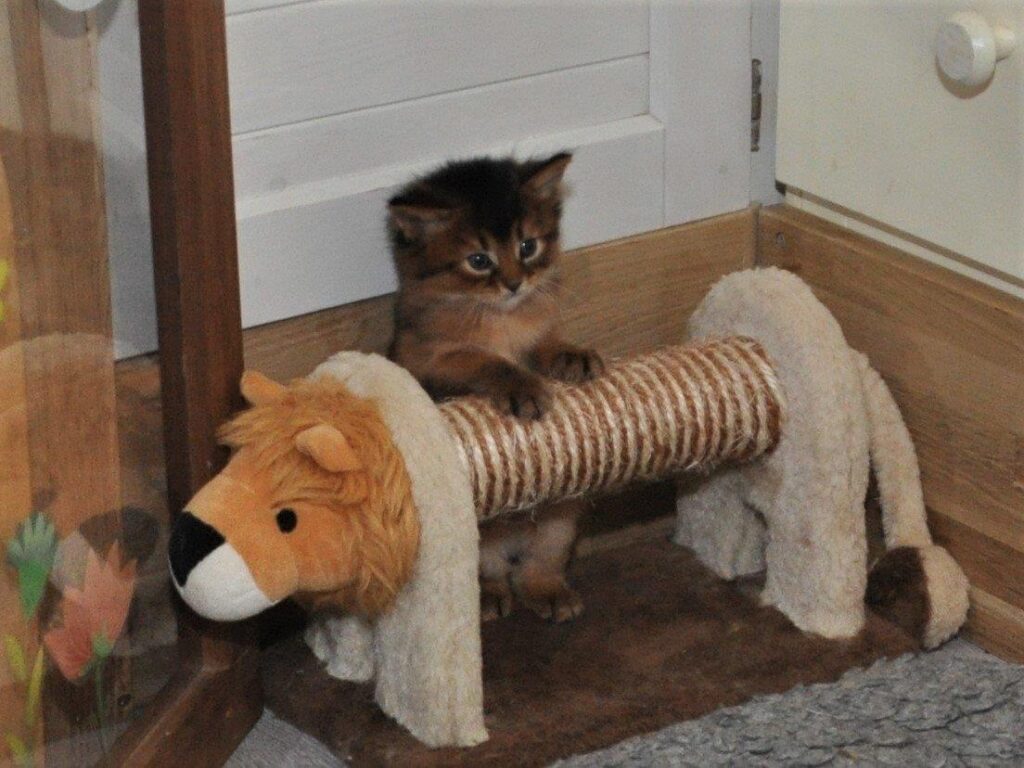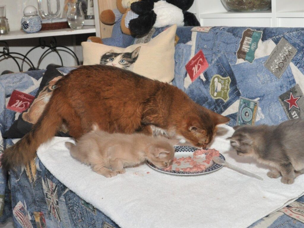 Zo lief en zorgzaam Sher voor Bodiir was tijdens de show, zo lief en zorgzaam is Bodiir hier thuis voor Sheralyns kittens. Met het spel is hij zo voorzichtig met de kleintjes. Dat ze nu wat groter en weerbaarder zijn, maakt het nog leuker voor hem. Zaterdag vierden we zijn vijfde ‘vermaanddag’. Hij deed dat op zijn beurt ook door nog zorgzamer te worden voor de kittens. Naast het spelen zag ik dat hij ze ook echt ging verzorgen. Hij heeft zelfs zijn eerste kittenverschoning gedaan! Daarom mag hij met een foto met Sheralyn en de kittens deze pagina sieren.