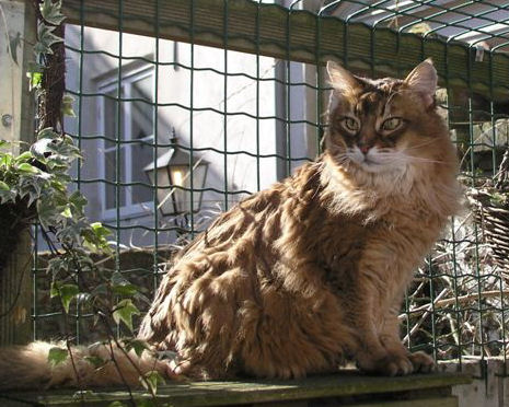 Maar alle andere kattendingen ontdekt en doet zij inmiddels ook. Wel wat later dan de anderen maar dat is geen probleem. Zij gaat bijvoorbeeld ook door het luikje door het tunneltje in de schuur naar de tuin en weer terug. We hebben hier heel wat nesten gehad die deze mogelijkheid om in de tuin te kunnen spelen wanneer zíj willen nooit ontdekt hebben. Meestal waren het de zilver Abessijnen die dit het snelst door hadden maar nu hebben we een allegaartje. Zouden de Somalietjes het van de Nieckjes Abessijntjes hebben opgepikt? De combinatie Nieckje x Yamie geeft wel hele slimme kittens. Van de week moest ik Radjinn ook al van de tuinafzetting afplukken en toen we vanmorgen Ramses niet konden vinden en de voordeur open was geweest, heb ik er spontaan weer een aantal grijze haren bij gekregen.