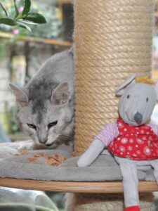 Vandaag ontvingen we een berichtje over Xera, het Abessijnse zusje van Sheralyn. Ze was voor de eerste keer krols geworden en zodra dit achter de rug is, gaat ze naar de dierenarts voor de castratie. Dit is het ideale tijdstip voor een lang en gezond kattenleven. Abessijntjes zijn vaak wat sneller in hun ontwikkeling dan Somalietjes. Somalizusje Sheralyn heeft het nog gewoon druk met vooral buiten spelen en kattenkind zijn. Hun broertjes Toulouse en Tigger waren Xera al vooruit en zijn een paar weken geleden na een bezoekje aan de dierenarts iets lichter thuisgekomen. Daar breken hun mensen nu hun hoofd hoe ze ‘Stout en Zeer Stout’ een veilig buitenverblijf op hun dakterras kunnen gaan bieden. Hun foto’s staat rechts.