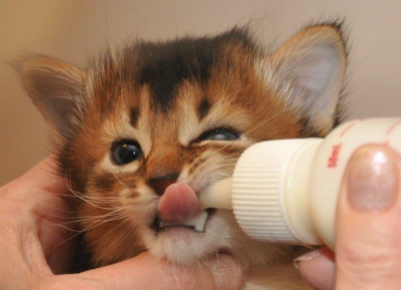 Pleegvader Franz zorgde ontroerend goed voor haar kittens. -