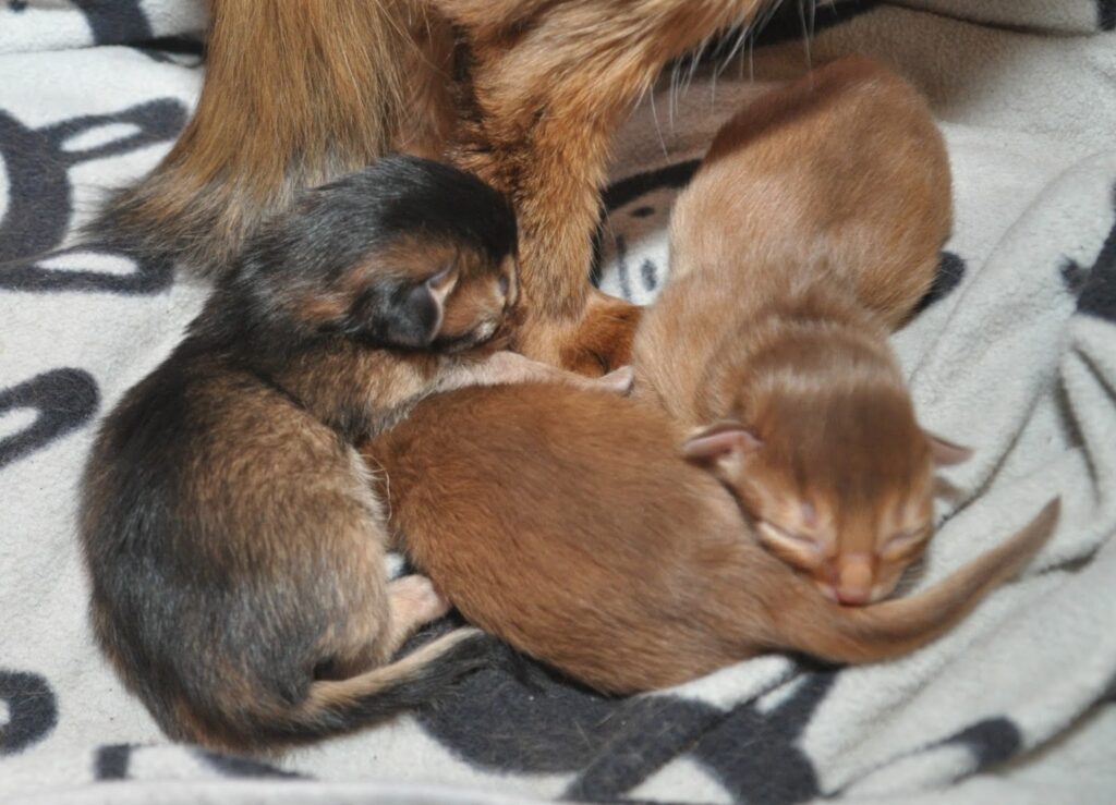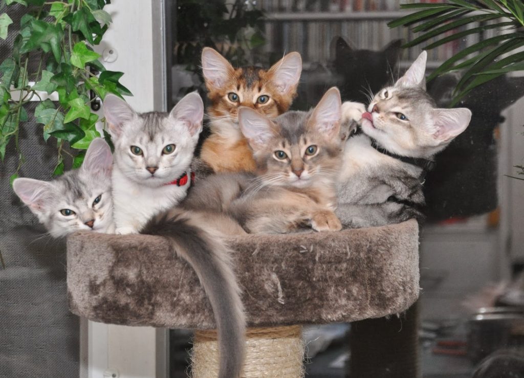 Ze was al snel goede maatjes met de Abessijnse kater Franz. Die bleek niet gecastreerd te zijn… Het was vooraf niet besproken of ze met Jewel een nestje wilden fokken maar dit was een leuke optie voor later. Helaas haalde Franz dat niet. Hij ging sproeien nadat een keer een vreemde kat het huis was binnengedrongen en moest gecastreerd worden. Maar Bashiir nam graag die taak van hem over.