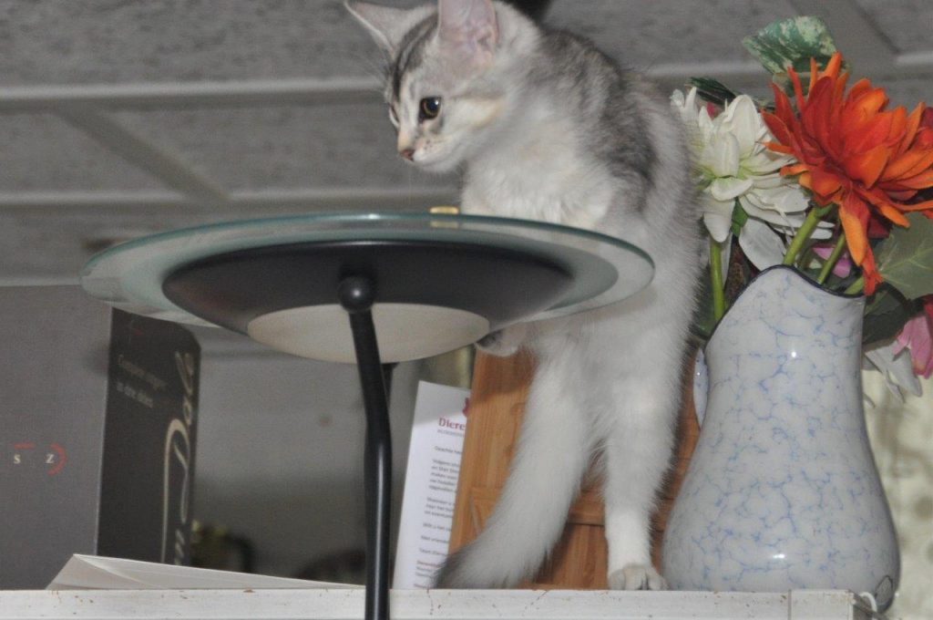 Broertje Vidar van Robert en Ninon. Vidar adoreert vooral zijn grote broer Baldr en doet alles wat zijn grote broer ook doet. Dus als Baldr geroepen wordt, rent hij net zo hard mee naar binnen. Daardoor had Ninon vaak niet de kans om hem net zoals Baldr te belonen voor het enthousiast aan komen rennen. Wanneer gewenst gedrag niet beloond wordt, zou het uit kunnen doven en dat wil je niet. Daardoor is Vidars naam veranderd in Balderick. Het is trouwens een opvallende eigenschap van deze zilverfamilie dat ze altijd zo enthousiast aan komen rennen. Hun jongere neefje, onze nu een jaar oude Bodiir, komt ook nooit gewoon maar altijd op een holletje. En nog een overeenkomst: als ik Polly roep, komt Bodiir meestal ook aanrennen. Ik roep Polly vaak met het woord ‘Pohol’ en als ik Bodiir alleen wil hebben, roep ik dit wat zachter zodat de wat slechthorend wordende Polly niet gestoord wordt en vriendje Bodiir kan melden.