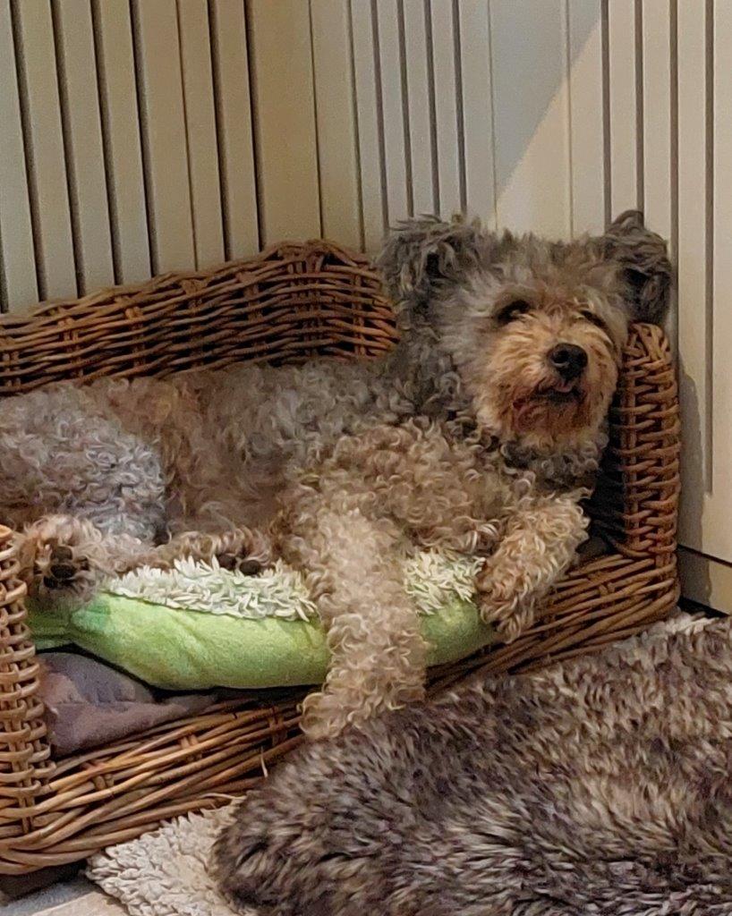 Vorige week, toen Shabanou weer voor een controle van haar oogje ging, hadden we Polly ook meegenomen naar de dierenarts omdat ze pijnklachten had. Zo zielig. Ze slaakt dan een gilletje en als we dan toevallig met haar op straat lopen, raakte ze zelfs in paniek. Haar oortjes draait ze dan allebei naar achteren en ze trekt dan enorm aan de lijn. Het is dan haast niet mogelijk om dan contact met haar te krijgen. We hebben nu pijnstillers (Carporal) voor haar in huis zodat we haar dit in voorkomende gevallen kunnen geven. Ik was ook van plan om een pilletje in mijn tas te doen maar die zat er nog niet in toen we vanmiddag op weg waren naar een gezellig middagje met vrienden. Dat stuk lopen was geen feest maar eenmaal op het terras gedroeg Polly zich gelukkig normaal. Op de terugweg gingen haar oren weer in de ‘racestand’ en hadden we hetzelfde probleem: geen contact te krijgen en alleen maar trekken. Die pil zit er nu dus in en ik ga straks nog even een blokje met haar om om te kunnen zien of het lopen nu normaler gaat.