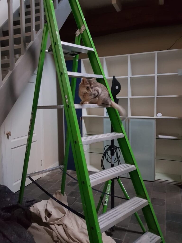 Op de foto’s: de kittens, Lilibet, Taki en Boudica van het B-nest, dollend met de vorige kittengym. Sheralyn erin relaxend. Bodiir wachtend bij de nieuwe kittengym en opa Bashiir heeft hem ook al goedgekeurd.
