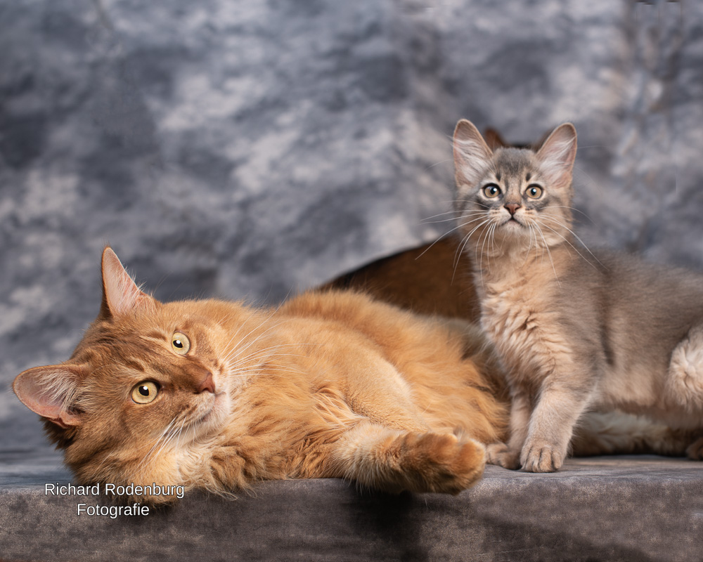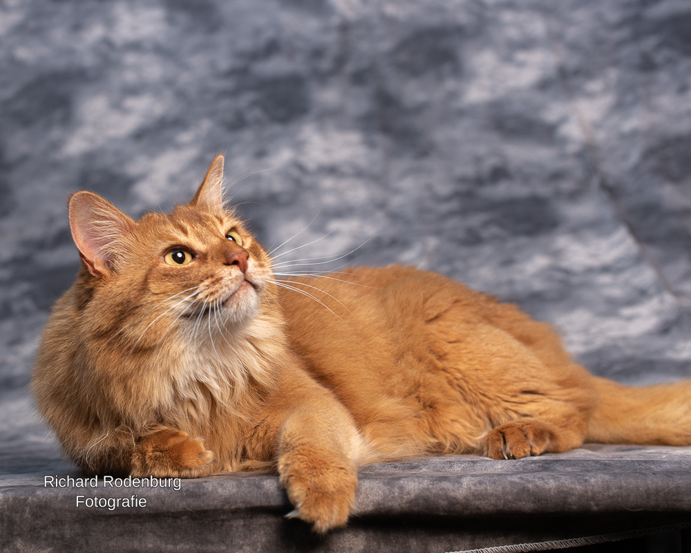 Op de laatste foto poseert zijn blauwe achterkleindochter Boudica heel schattig bij hem. Boudica heeft haar carrière als fotomodel – en aangevuld met een showcarrière – voortgezet bij haar eigen mens, de fotograaf van al deze mooie foto’s, Richard Rodenburg.