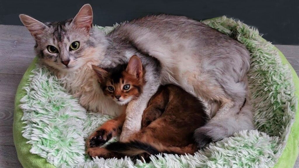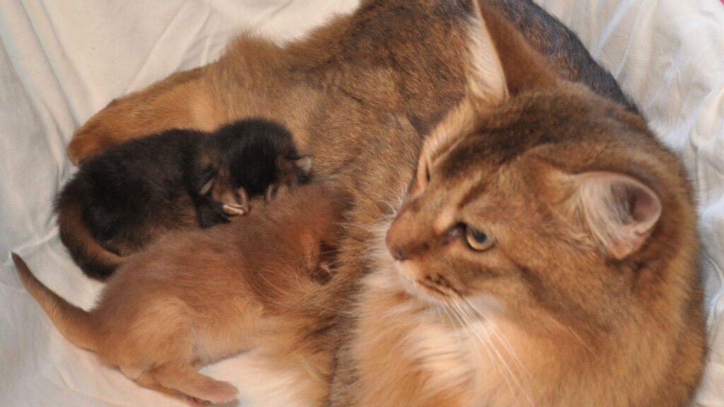 Lest best: we gaven Sher nog een kans op een echt nest. Ze (deze keer Bodiir en Sher) hebben extra goed hun best gedaan en toen kreeg Sher zelfs een vijfling. Helaas overleed het vijfde kitten vrij kort na de geboorte. We hoopten op een poesje voor onszelf en eentje voor Agathe in Frankrijk. We hadden er zelfs drie! Daarvan hebben we LeeLoo voor onszelf gehouden.
