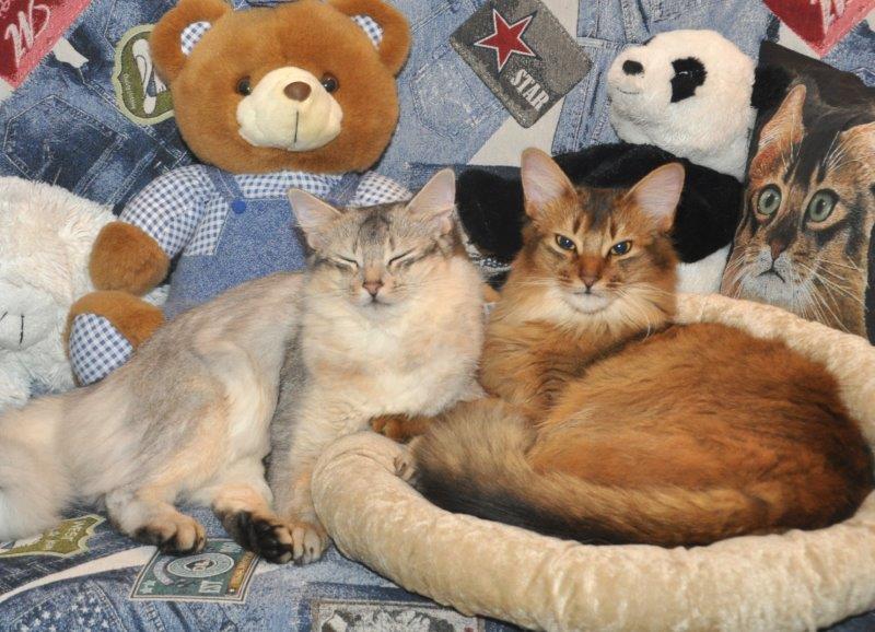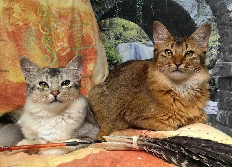 Rechts staan de Abessijn-variantpoesjes Nini (Ding) en Nena.