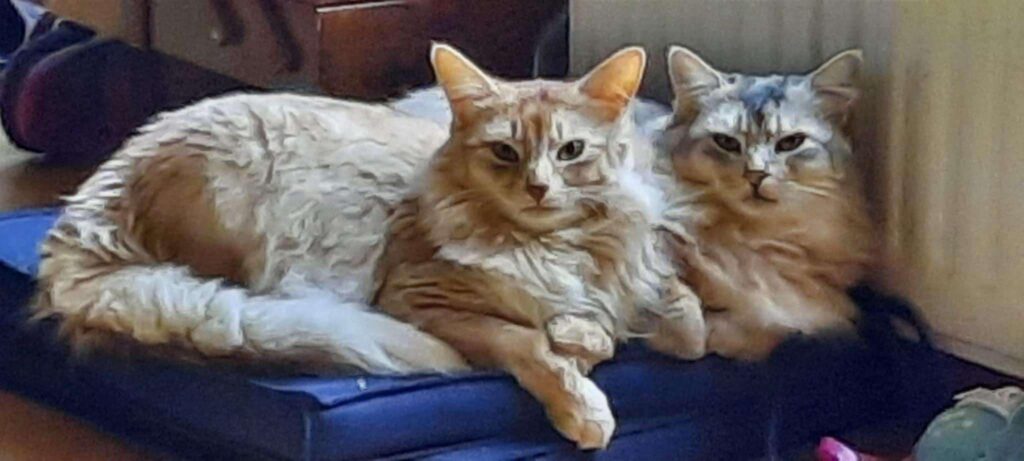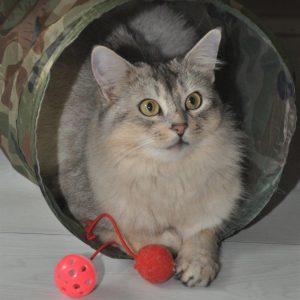 Het is voor een kat erg belangrijk om de omgang met andere katten niet te verleren en daarom kwam Boromir in haar leven. Boromir is voor deze familie ook geen onbekende. Hij is een zoon van Elfies halfzus Lemon รฉn de broer van onze Bodiir. Hoe dit tweetal met elkaar omgaat is fantastisch. Het is echt genieten voor mens en dier.