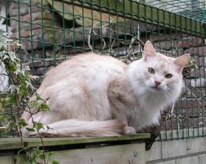 Als kater ging hij wel sproeien maar dat was geen probleem. Wij sluiten onze dieren nooit permanent op of buiten en om problemen te voorkomen, worden a.s. dekkatertjes wanneer ze opgroeien getraind aan het dragen van een broekje. Ik had voor hem er zelfs gehaakt in de kleur van zijn ticking, maar daar heb ik helaas geen foto’s van. Dankzij die broekjes kon hij toch gewoon deelnemen aan het huiselijk leven en zich bezighouden met zijn meest gewenste bezigheden: kittens verzorgen en met mensen knuffelen.Als kater vond The Fonz zichzelf geweldig, maar dé poes hier in huis zag hem niet staan. Die was helemaal verliefd op Valentijn en hield dat vol, ondanks het feit dat Valentijn al lang gecastreerd was. Omdat wij ook vonden dat ze niet zo moeilijk moest doen, hebben we ze samen in de kattenkamer gezet. Uiteindelijk is het gelukt, maar de kittens die negen weken later het levenslicht zagen, waren geen liefdesbaby’s. Elvira zal waarschijnlijk op een bepaald moment in slaap zijn gevallen en heel krols zijn wakker geworden en niet achterom hebben gekeken. El was kwaad! Hun relatie is verbeterd in de loop der jaren, maar echt dol zal ze nooit op hem worden. Maar het resultaat was geweldig. Daar hebben we de prachtige Kelly Kathleen aan overgehouden.