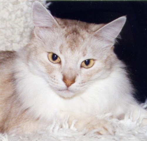 Maar leuk dat dat nestje was! Zowel vader Zucci als moeder Rowena waren zwartzilvers en we verwachtten een nestje zwartzilvertjes. Het was wel mogelijk dat er kittens zonder zilver geboren zouden worden, maar zo’n prachtige kleurverdeling zoals dit nestje geboren werd, hadden we nooit verwacht: van iedere genetisch mogelijke kleur werd keurig één kitten geboren. Eigenlijk had Fonzie of zijn zwartzilveren broer een poesje moeten zijn. Die wens voor een poesje dateerde al eerder, nl. al toen Fonzies vader werd geboren. Dat nestje was een buitenkansje. Een prachtige variantpoes en een dekking van een kater die geboren was in Finland uit ouders die uit Australië waren gekomen. Vijf keer keek ik hoopvol onder de staartjes in de hoop dat er een poesje werd geboren: vijf keer een zwartzilveren kater!! Gelukkig was de eigenaar van het beste katertje bereid om hem een keer een nestje te laten maken en zo werd dit nest dus geboren. Die genen waren veel te interessant om uit te laten sterven, dus besloten we hem aan te houden. Dat de genen de moeite waard waren, heeft de tijd inmiddels wel geleerd en dat poesje is er later ook nog gekomen. Dat is onze Kelly Kathleen die ook op deze pagina’s staat.