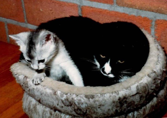 Helaas heb ik geen foto’s van de beide Snoopy’s digitaal. Maar er moet nog wel ergens iets te vinden zijn. Helaas zijn beide poesjes jong overleden. De eerste Snoopy is, evenals heel wat andere katten van ons woonblok, vergiftigd door een buurtbewoner. Sjimmie at het vergiftigde voedsel niet en werd zodanig mishandeld dat ze tijdelijk verlamd raakte. Snoopy II had eenzelfde uiterlijk als de eerste, een lapjeskat. Grijs en rood tabby met veel wit. Zij was een totaal ongesocialiseerd boerderijpoesje dat helaas uit de ren bij onze stacaravan is ontsnapt en nooit meer teruggevonden is. Bijna alle foto’s van beide Snoopy’s hebben we toen gebruikt voor de flyers op de Veluwe. Vandaar dat hun foto’s ontbreken.