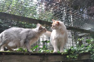 Na wat Finidiar leek dit probleem onder controle en wat extra lekker eten zoals gestoomde makreel, een vorkje sterk ruikend vlees uit de blikjes, kuipjes en de zakjes door de Carnibest of hart, en gekookte kip en vis hielden we hem gelukkig wel aan het eten maar vooral zondagavond vonden we hem veel te tam. Jack hoort dagelijks luid koerend en kraaiend zijn sprintjes door huis en tuin te kunnen trekken. Maandagochtend togen we dus direct met hem naar de dierenarts. Toen ik hem in zijn transportmand zette, voelde ik dat hij wat verhoging had en ik dacht/hoopte dat er dus niet iets engs als kanker zou spelen en dat hij iets had wat de dierenarts met een antibioticakuurtje zou kunnen verhelpen. Toen echter onze super empathische Orchid als een wakend engeltje naast zijn mand plaatsnam, ging er al een angstgolf door mij heen… Er is toch niets ernstigs aan de hand???