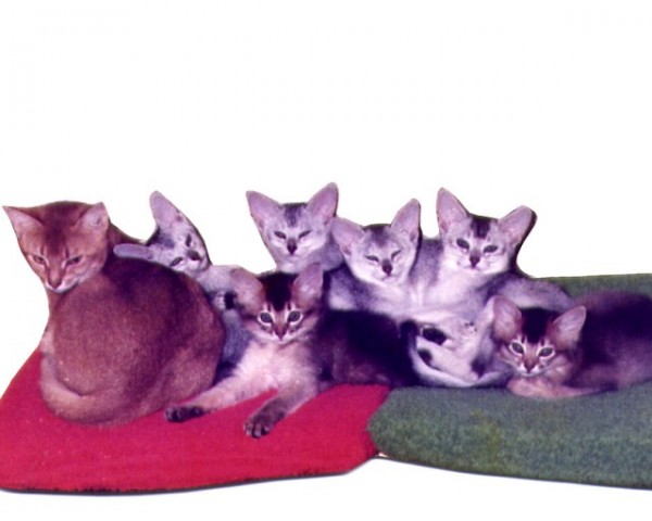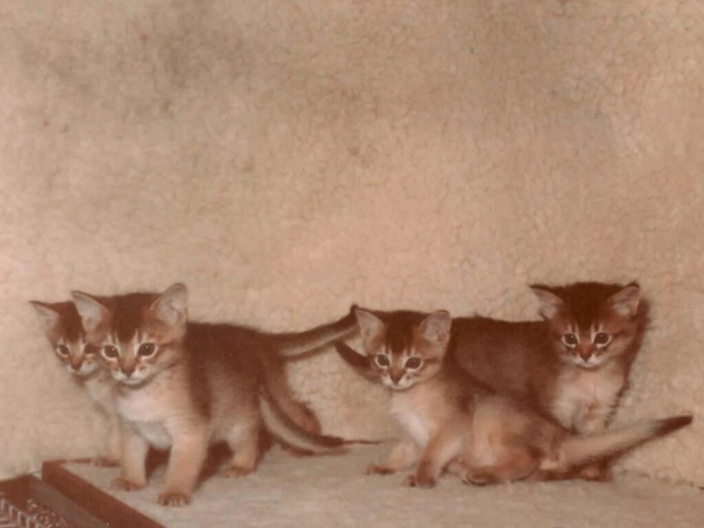 Ons A-nest in 1983. Rechts het enige Somalipoesje Anches Shirezah.