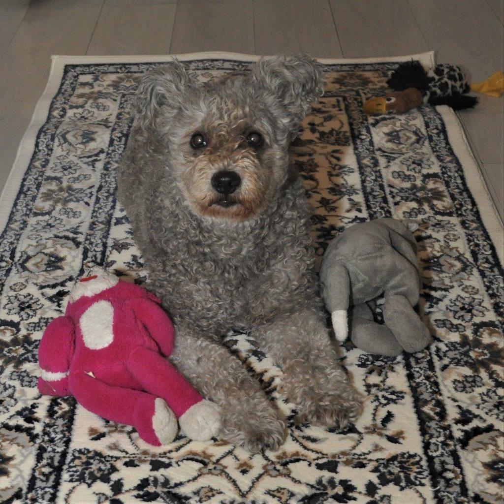 Om de blogs niet langer te maken dan ze al zijn, had ik in de vorige blog geen echt nieuws over ons lieve hondje Polly opgenomen. Met haar hebben we flink in de zorgen gezeten. Op een gegeven moment had ze pijn. Bij bepaalde bewegingen piepte ze en eer een Pumi piept! Pumi’s zijn allesbehalve watjes dus hup, naar tante dokter. Zij zag gelukkig al snel waar het mis was: Polly had pijn in haar nek. Mogelijk een verrekking en niet, gezien haar manier van lopen, een hernia want dan zie je vaak uitstralende pijn in de pootjes. Wat waren we opgelucht! We hebben meteen een kleed bij Ikea gehaald en in de kamer gelegd. Zo loopt Polly wat minder te slippen over onze, voor haar eigenlijk te gladde, vloer.