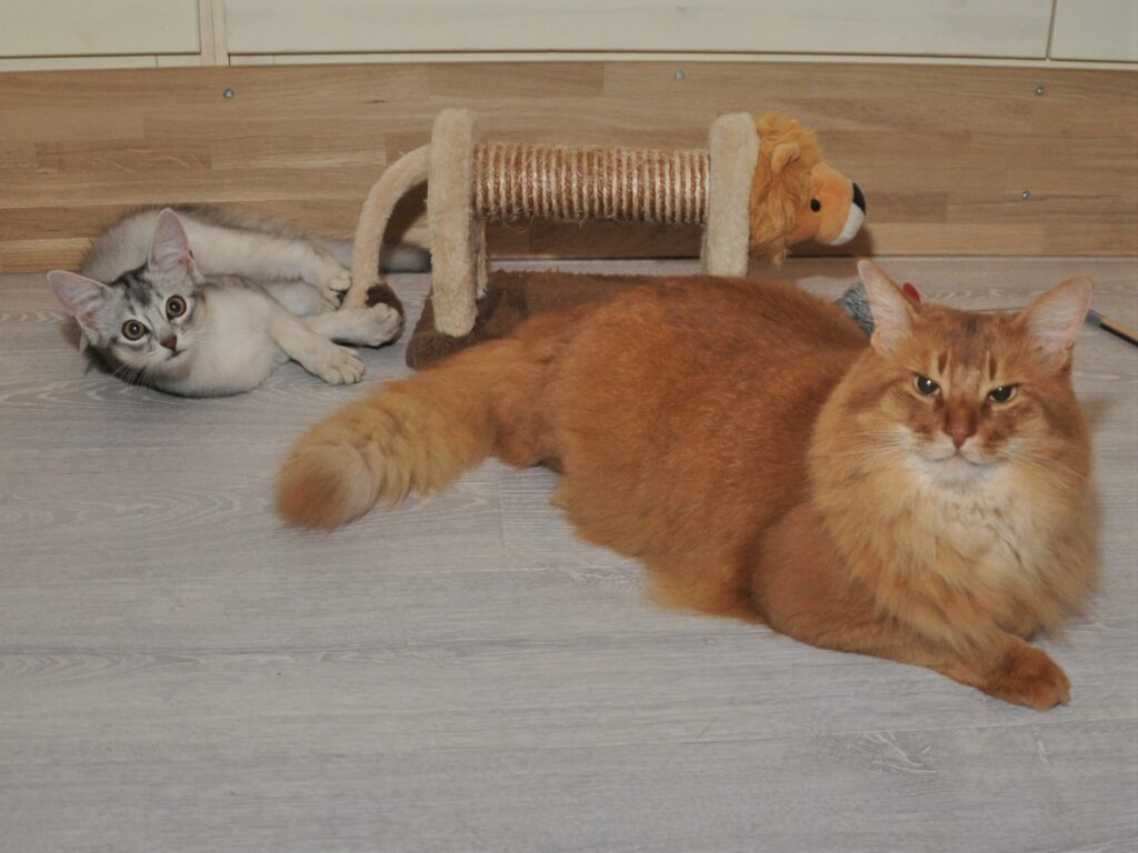 Bodiir en Bashiir zijn erg op elkaar gesteld. Echt vrienden. Maar Bodiir is ook heel erg blij met de nieuwe kittens in huis. Het duurde wel even totdat Sheralyn zijn aanwezigheid weer toestond want het leek er de laatste maanden op dat zij hem als haar toenmalig pleegkind had verstoten. Het is ook niet ongebruikelijk dat moederpoezen hun zonen verstoten. Dit is iets natuurlijks om inteelt te voorkomen. Sheralyn is nu aan de Suprelorin waardoor zij zich als een castraat gaat voelen en mogelijk is haar aversie daardoor nu afgenomen. Bodiir is er maar wat blij mee dat hij weer in haar buurt mag komen alleen het ouderwets woest stoeien, valt bij haar nog niet in goede aarde.