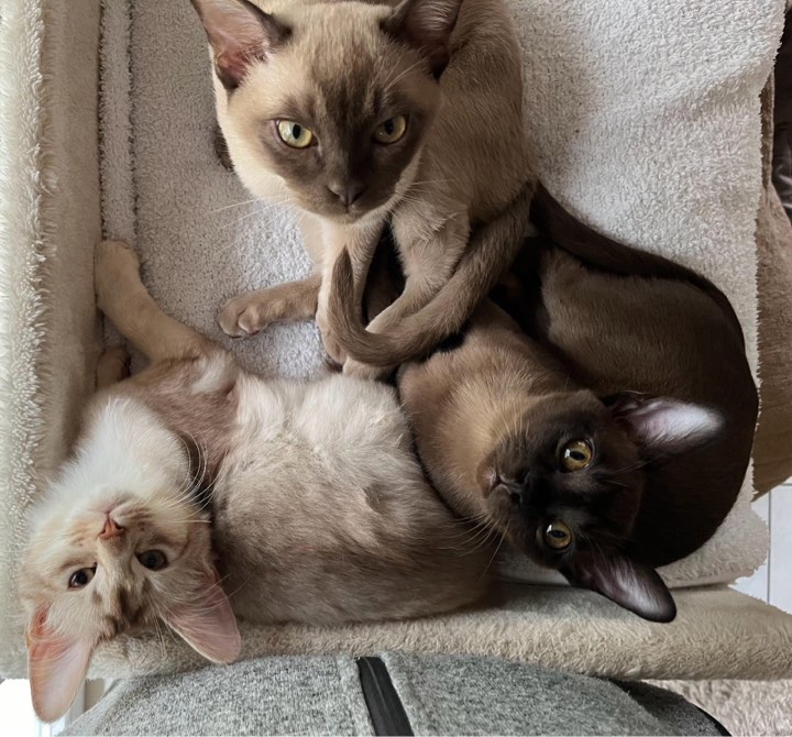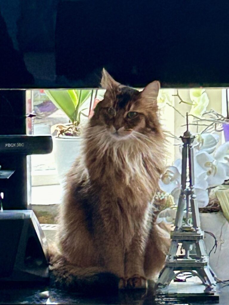 Ik noemde al de verjaardag van de zoon van Maverick bij Nieckje, Tamaran. Tamaran is een van de exen van Shabanou waar het met haar leeftijd van bijna zeventien ook best redelijk mee gaat. Ik ben nu aan het uitproberen hoe haar vacht zich houdt zonder een driemaandelijkse rijstzetmeelbad. Maverick is ook een ex van Shabanou en een van hun dochters is Flavia. Tot ieders schrik bleek zij suikerziekte te hebben gekregen. We zijn zo opgelucht dat zij heel goed op de behandeling reageert. Haar suiker blijft dalen! Laatst kregen we ook goed nieuws over haar broer Uriah. De hogere leeftijd valt bij hem ook niet meer te ontkennen maar met hem gaat het ook best goed. Uriah staat trouwens in de database van Pawpeds omdat hij nakomelingen in Frankrijk heeft. Wellicht komen zijn nakomelingen die van Eywa (nu een Française) ooit nog stamboektechnisch tegen. Haar mens, Agathe, houdt een foto-/videoalbum over haar bij. Ik moet de nestpagina over deze heerlijke kittens helaas nog bijwerken. Met deze kittens gaat het ook uitstekend. Het is wel jammer dat broertje Charlie een terugval met zijn geblesseerde oogje heeft. Volgens de dierenarts zit het hem in zijn traanbuisje waardoor zijn oogje wat traant. De hoofdpersoon van deze blog komt net met natte pootjes uit de tuin en neemt plaats op de vensterbank om de wereld vanuit dat gezichtspunt te bestuderen. Vader Bodiir ligt me vanaf de bank aan te kijken en moeder Sher loopt nu over mijn laptop heen, vast om me een seintje te geven dat het zes uur is en dat het tijd is om eten te gaan maken 🙂 Ga ik nu dus doen. Hierna zijn de berichtjes over Tinka en Umione aan de beurt.