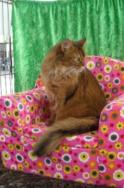 Deze show op 13 en 14 september in Schiedam was anders dan de gebruikelijke shows. Er waren in verhouding veel meer buitenlandse deelnemers (goed voor de onderlinge contacten en samenwerking van fokkers) en gewonnen certificaten telden als een buitenlandse punt (hoorde ik). De belangrijkste reden voor exposanten om te komen, was de kans om een titel te behalen die mag prijken bij de naam van je kat. De Abessijnen en Somali’s hebben bijzonder goed gescoord in de competitie met de andere rassen. Genomineerd worden, was al heel bijzonder en dat lukte bij Richards Nino en zijn zusje Ginger van Guido en Iryna. Broer en zus beiden genomineerd en Ginger won die titel ook nog! En wie is Ginger? Ginger is de hartsvriendin van ‘onze Felicia’ in het verre België. We krijgen vaak de gezelligste foto’s van deze twee poezen. Het is zo fijn te weten dat Felicia daar in zo’n warm bad terecht is gekomen.