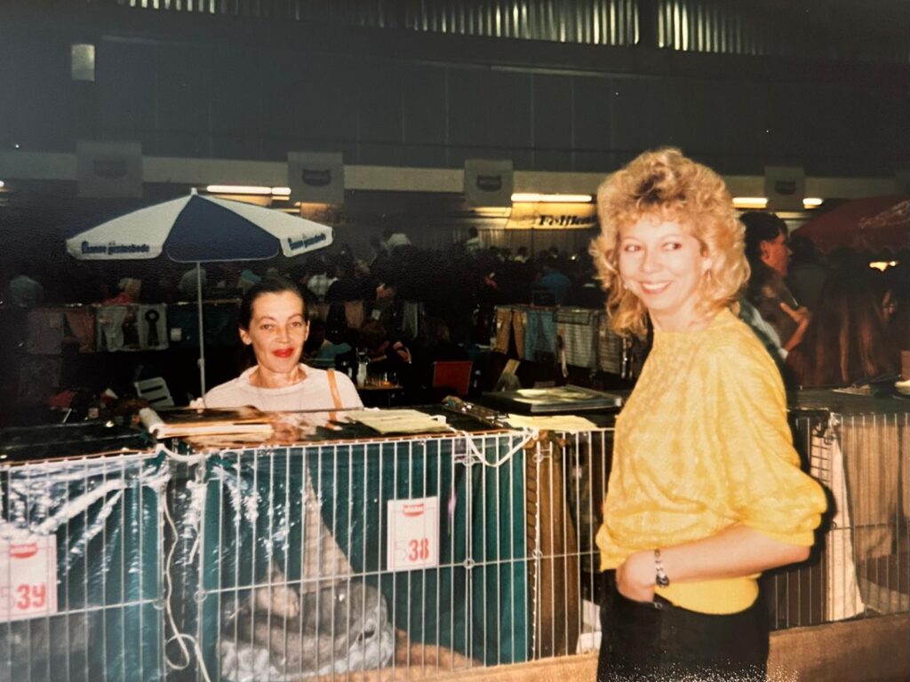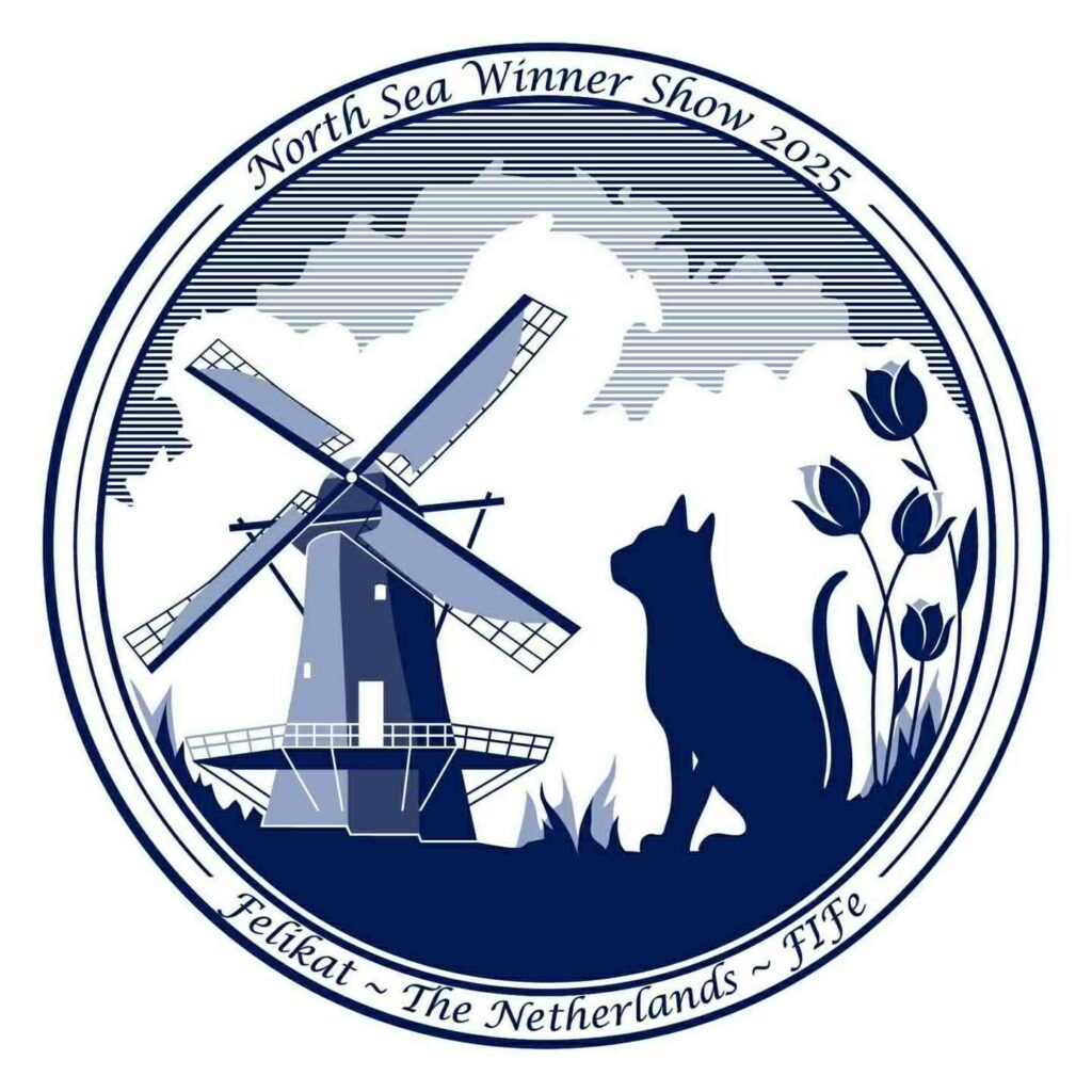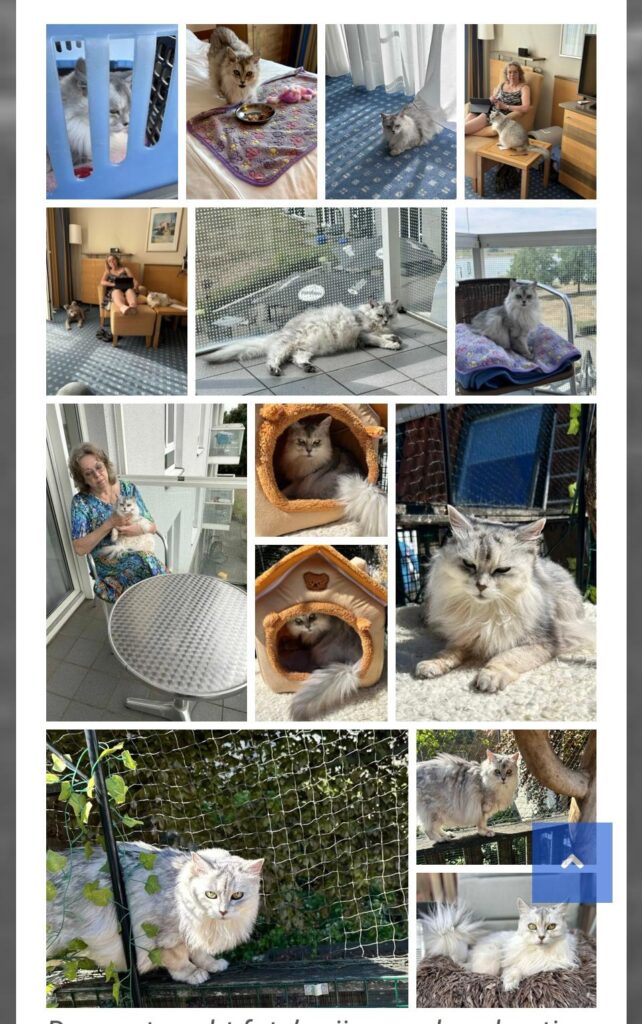 Er komen zoveel herinneringen boven. Aan inmiddels overleden collega-fokkers maar ook aan shows waar we samen naar toe zijn geweest. Zoals die hete ergens in Duitsland. Je bent jong en wij konden wel wat hebben. Maar wat waren we bezorgd over onze dieren. We waren met natte handdoeken in de weer om ze wat verkoeling te bieden. Terugkijkend denk ik dat qua temperatuur eigenlijk alleen het moment van het begin van de terugreis een grensgeval was. De auto had toen alleen ARKO (alle ramen kunnen open) en het was Huibert gelukt om de auto in de schaduw te parkeren. Dus voordat we de katten in de auto zetten, hadden we de auto laten doorwaaien en daarna rijden met alle ramen open en Hans tussen de katten op de achterbank. Hans woei nog net niet de auto uit 😉