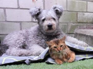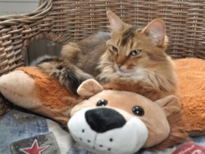 Voor wie het kleinschaliger wil aanpakken: in Amsterdam woont de mooie zilveren kater Victor die ook nieuw adresje nodig heeft. De reden is dat er spanningen zijn tussen hem en zijn zoon. Victor is nu hormonaal neutraal (hij staat op de suprelorin, net zoals onze Zagato, Jack, Elfie en Sher hebben gehad). Na verloop van tijd wordt hij weer hormonaal actief en dan zou hij nog een keer voor zeer welkom nageslacht kunnen zorgen. Ik sta dan met Tinka, Wiesje en haar zusje Wiske én zelfs Sher en haar dochter Nicky vooraan in de rij. Het is namelijk onmogelijk om nog ergens een dekking van een zilveren kater te krijgen. Het doet me zo’n pijn dat de zilver Somali aan het verdwijnen is: mijn levenswerk! Vanaf 1983 heb ik mijn best gedaan om de zilveren familielijnen uit te bouwen maar door de extreme fokrestricties tegenwoordig kunnen goedwillende zilverfokkers mij niet eens meer een zilveren kater uit mijn eigen lijnen terugverkopen.
